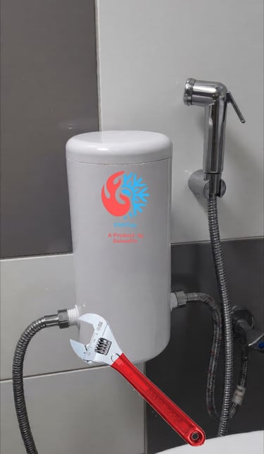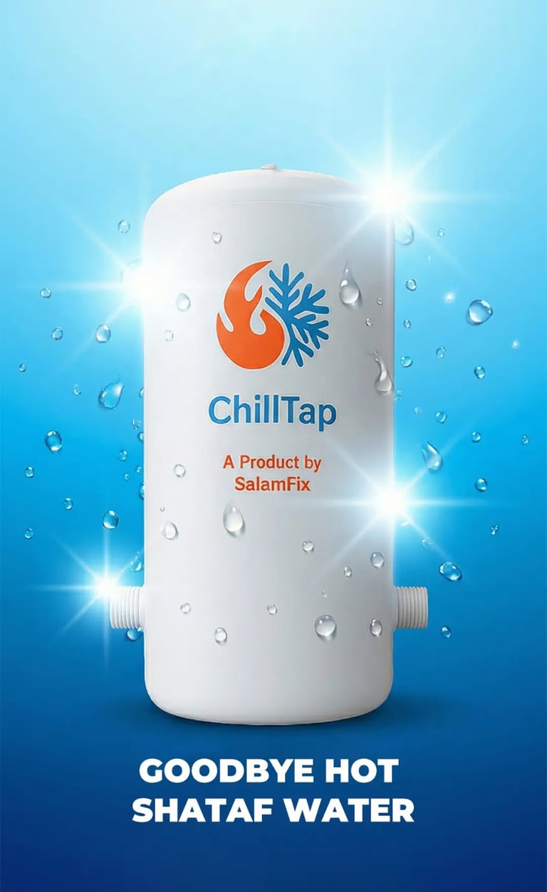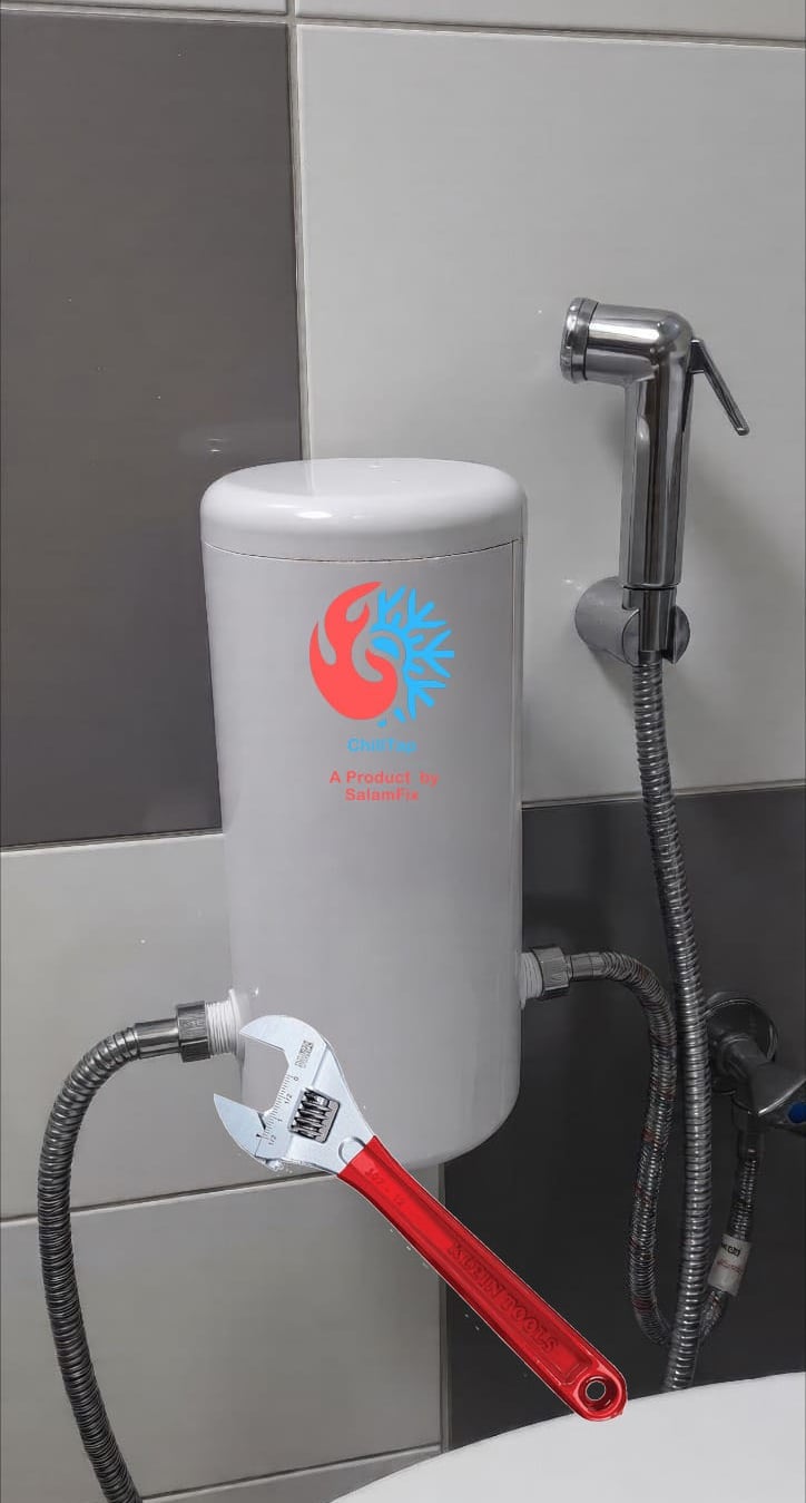 ChillTap is a plug-and-play water cooling device designed specifically for shattaf (bidet) use. It helps reduce hot water temperature, providing a more comfortable and refreshing experience, especially during hot weather.